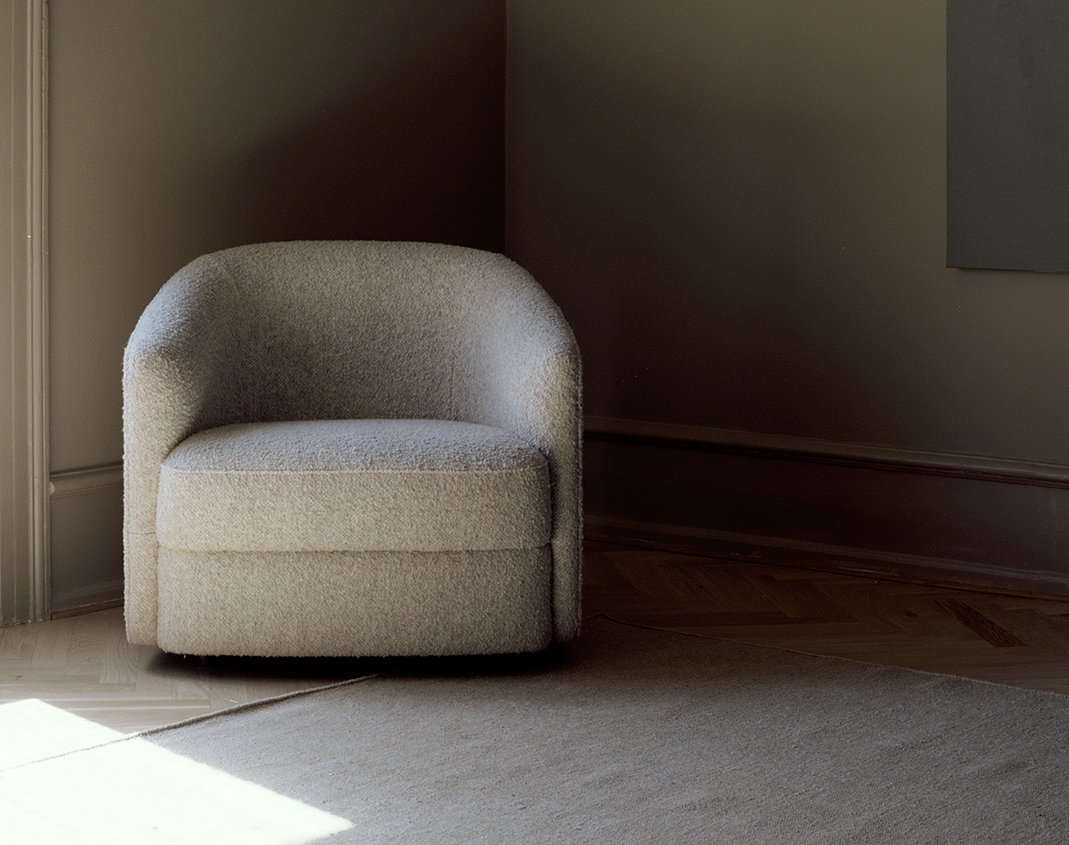 Textures play a pivotal role in bringing Fall indoors. Think of the crunchy leaves outside that you hear and the frost you see on the ground – these elements are very tactile and that is how I employ Fall aesthetics. Thicker upholstery such as boucle wraps you in cosiness, as well as thicker loop pile soft rugs and throws over a lounge chair are synonymous with this more ‘Hygge’ atmosphere I would employ so much in homes that I designed back in Europe before relocating.